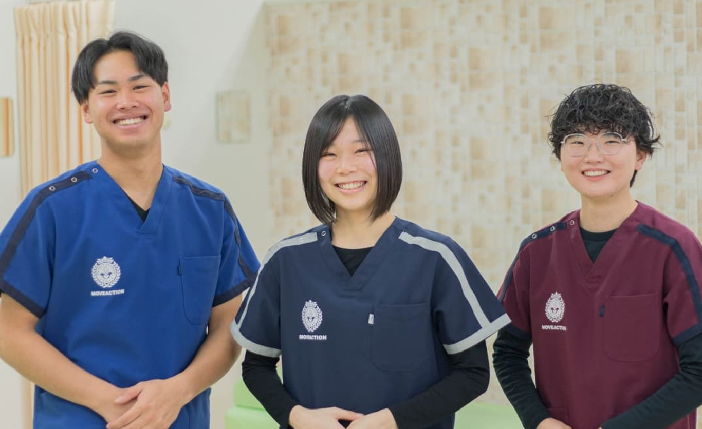 人生をより幸せに楽しく過ごすために「考える力」と「動く力」は決して無駄にならないはず。施術者としてはもちろん、「人」としての成長を力強く本気でサポート。ムーヴアクションでは様々な研修や仕事を通して、地域の皆様を幸せにする「技術」はもちろん「生きていく力」を身につけるステージを用意。スタッフ一同情熱をもって取り組んでいます。